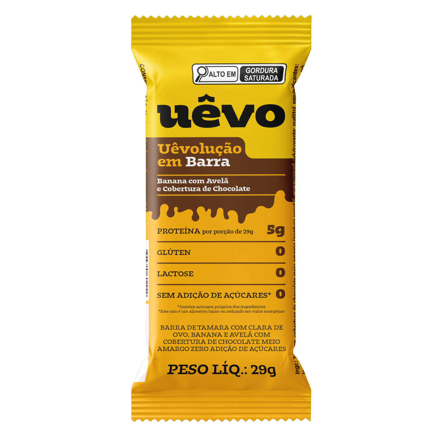 Uêvolução em Barra - Banana com Avelã - Cobertura de Chocolate 29g - 10un