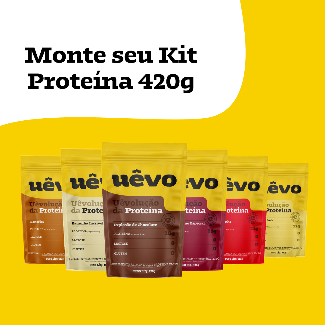 Monte seu KIT de Proteínas Uêvo de 420g com os seus sabores favoritos e aproveite o desconto progressivo!