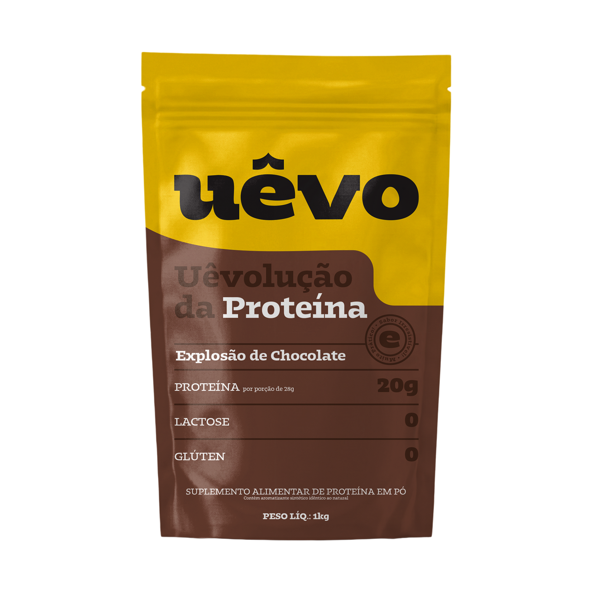 A proteína Uêvo sabor 🍫 chocolate entrega nutrição completa com sabor intenso e textura cremosa. São 20g de proteína por porção, em uma fórmula de fácil digestão e alto aproveitamento pelo corpo.