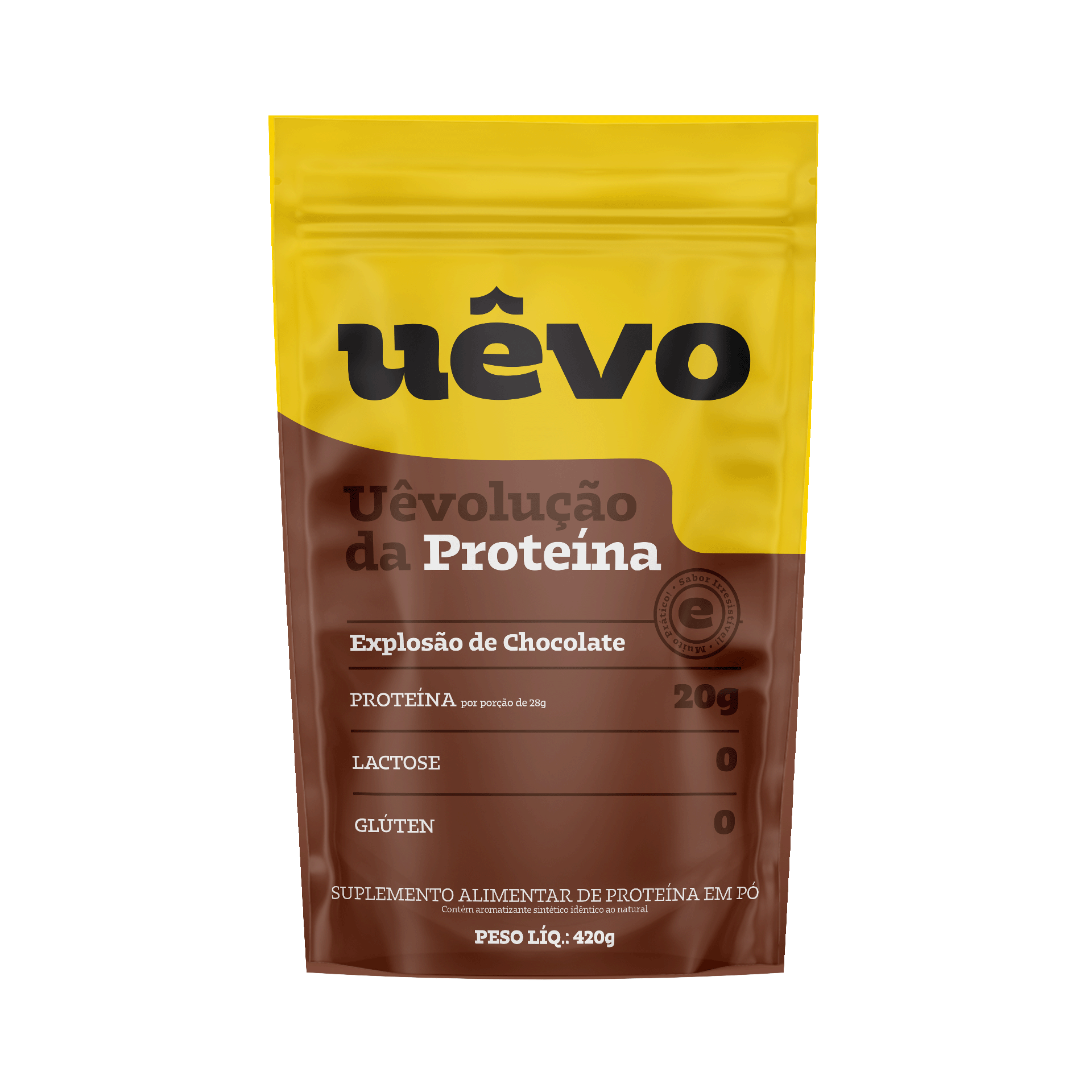 A proteína Uêvo sabor 🍫 chocolate entrega nutrição completa com sabor intenso e textura cremosa. São 20g de proteína por porção, em uma fórmula de fácil digestão e alto aproveitamento pelo corpo.